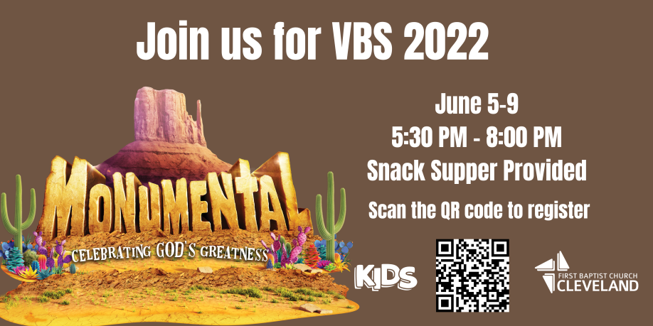Join us for VBS 2022!! Click the link below to register your child or scan the QR code on the image with your smart phone!